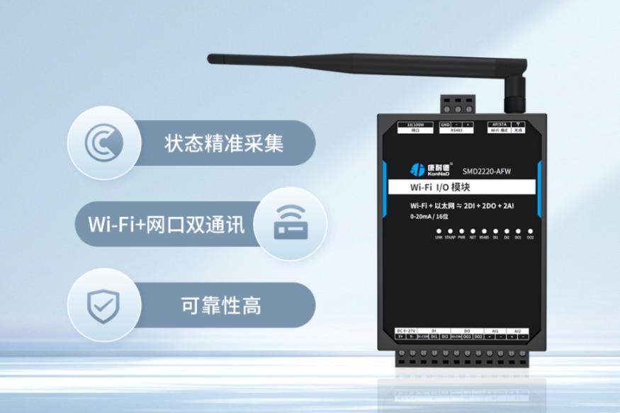 针对数控机床运行状态的实时监测需求,康耐德Wi-Fi I/O模块提供精准的数据采集支撑,核心功能特点如下: