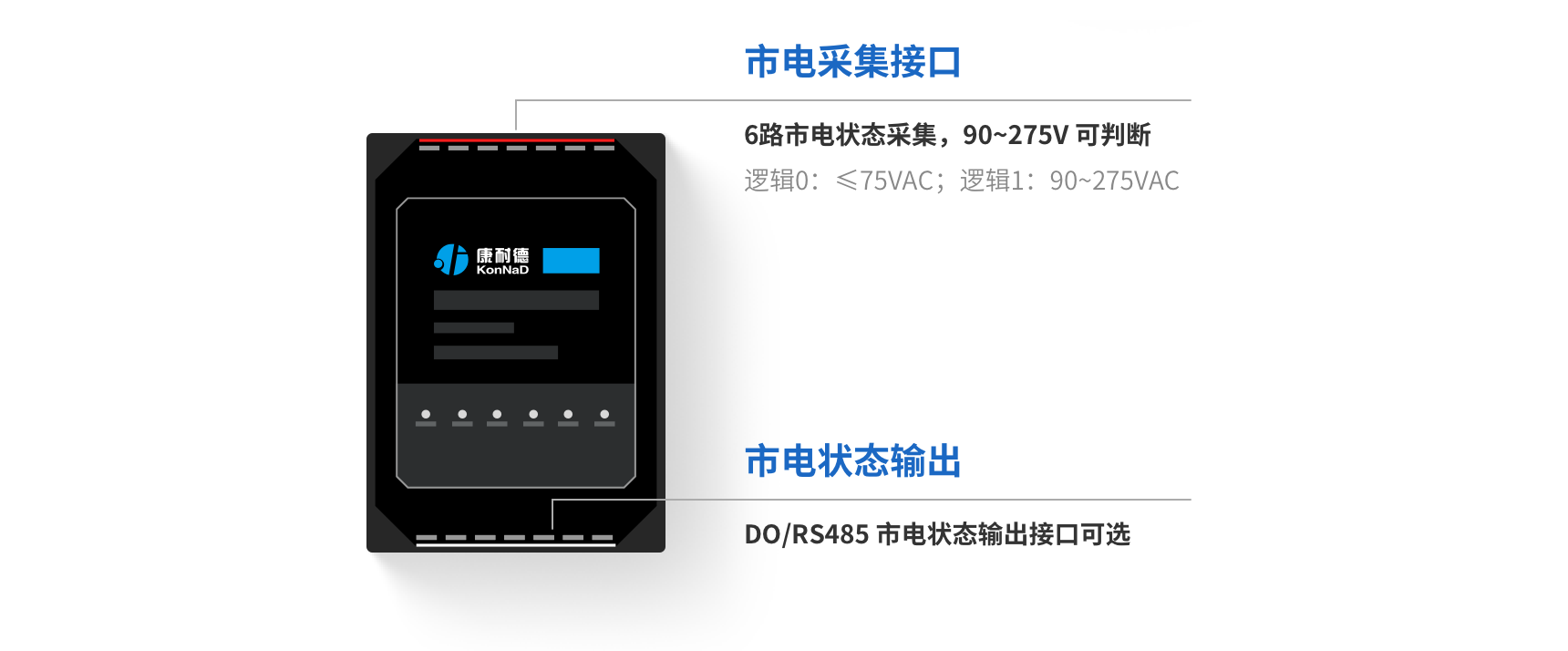 对上提供 DO 或 RS485 接口,实现 6 路市电状态采集