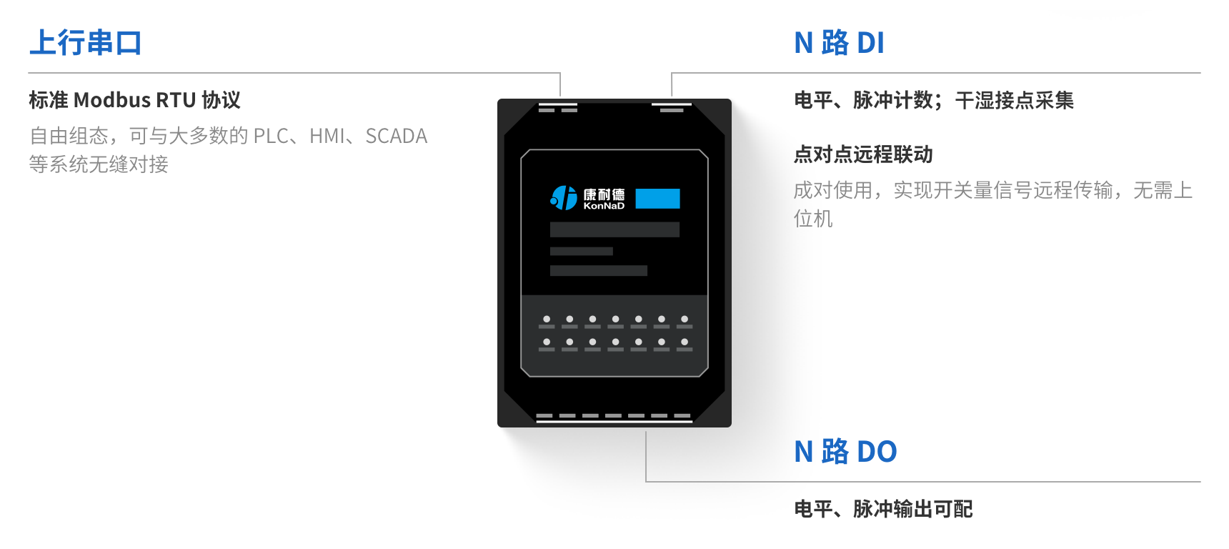 | 型号 | 向上串行接口 | 开关量路数 | DI 特性 | DO 特性 | 外观 | ||||